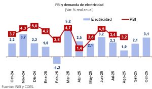 Uno de los indicadores más relevantes, la demanda eléctrica —altamente correlacionada con el desempeño del PBI—, creció 3,1 % en octubre, consolidando ocho meses consecutivos en terreno positivo.